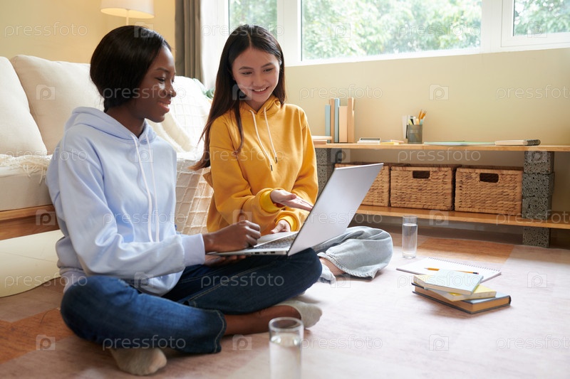 Девочки-подростки, работающие над проектом