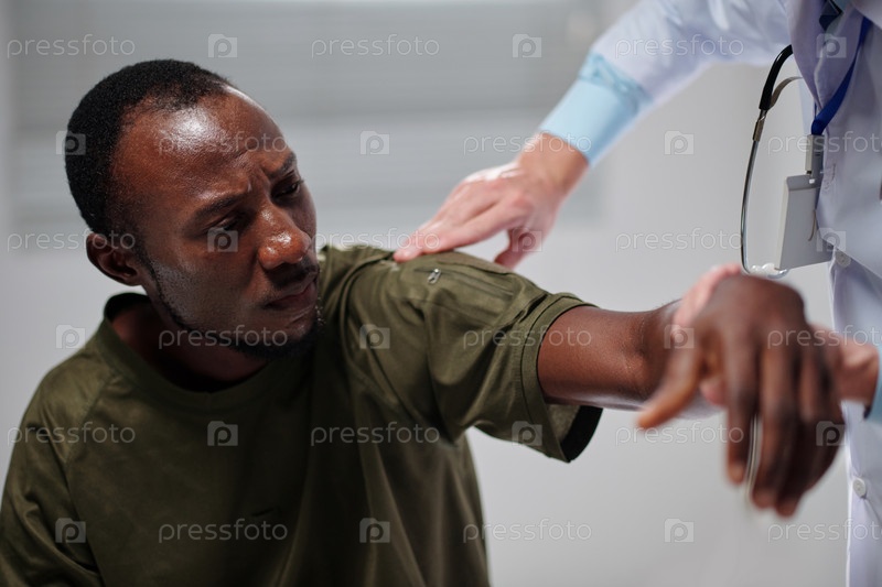 Солдат с травмированной рукой посещает врача