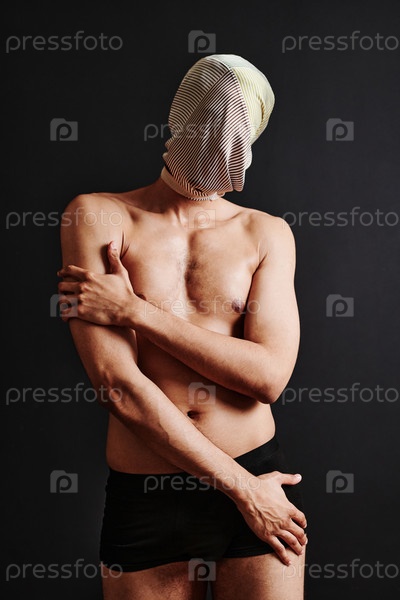 Мускулистый мужчина покрывает голову шарфом