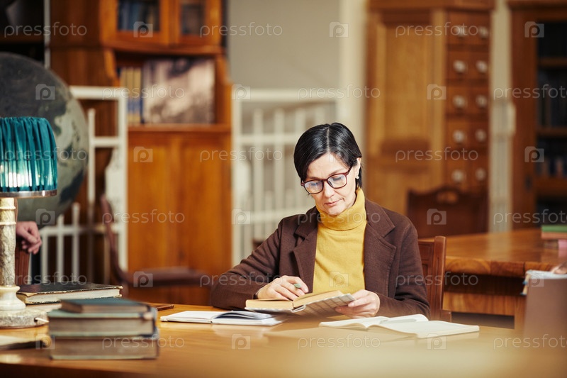Взрослая женщина в библиотеке