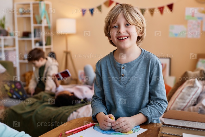 Милый блондин улыбается камере и красит