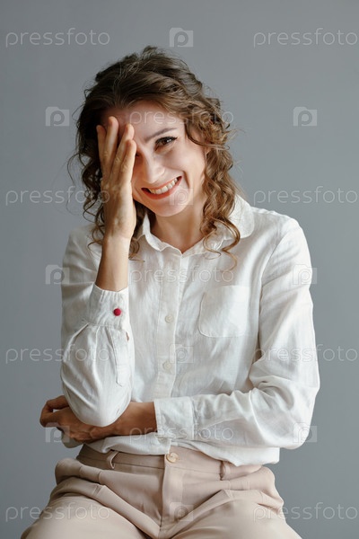 Веселая женщина средних лет