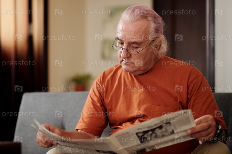 Старший мужчина читает газету