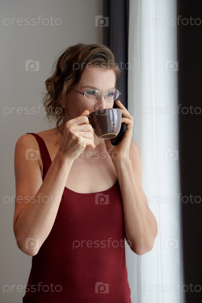 Элегантная женщина пьет кофе