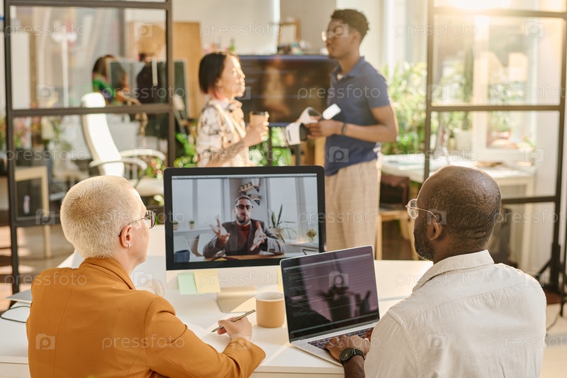 Программисты разговаривают в режиме онлайн с коллегой во время онлайн-встречи