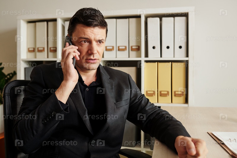 Разгневанный бизнесмен разговаривает по телефону