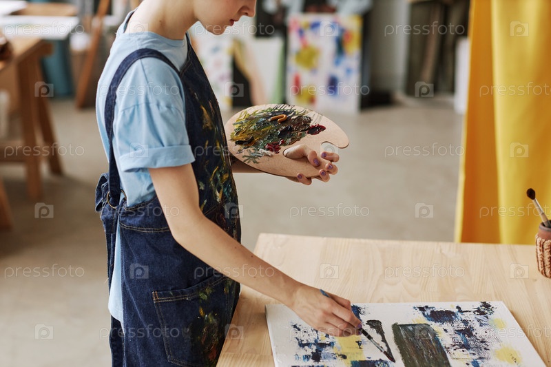 Обрезанный снимок молодой ремесленницы с цветовой палитрой