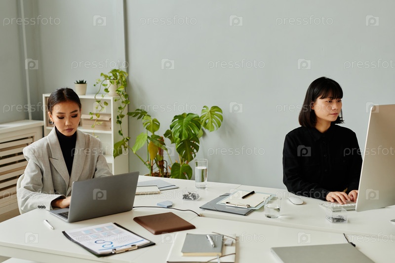 Две молодые женщины, работающие в офисе минимум