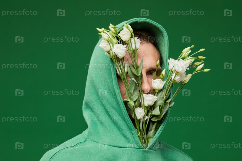 Концептный снимок человека с весенними цветами