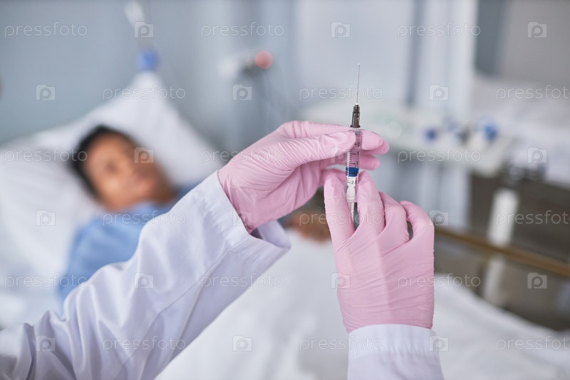 Близкий снимок медсестры, держащей шприц с лекарствами