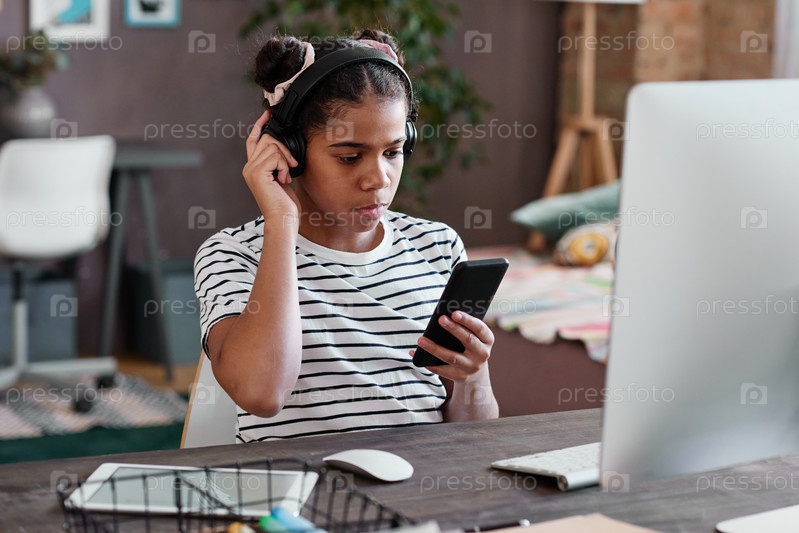 Девушка, использующая мобильный телефон для прослушивания музыки