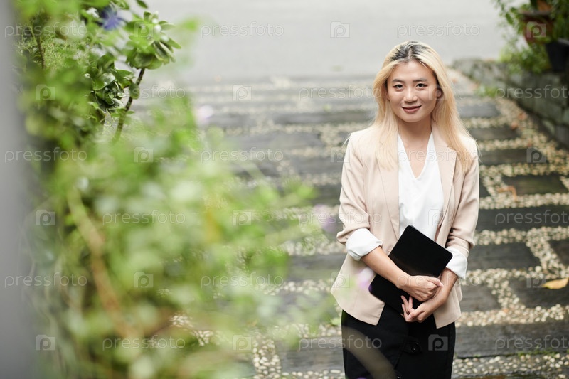 Женщина-предприниматель с планшетным компьютером