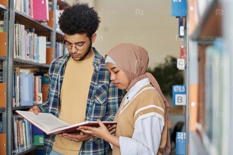 Студенты читают книги вместе в библиотеке