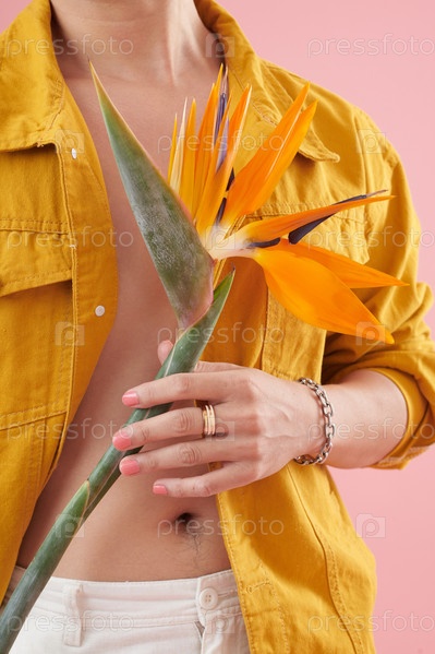 Человек-цвет, держащий птицу рая