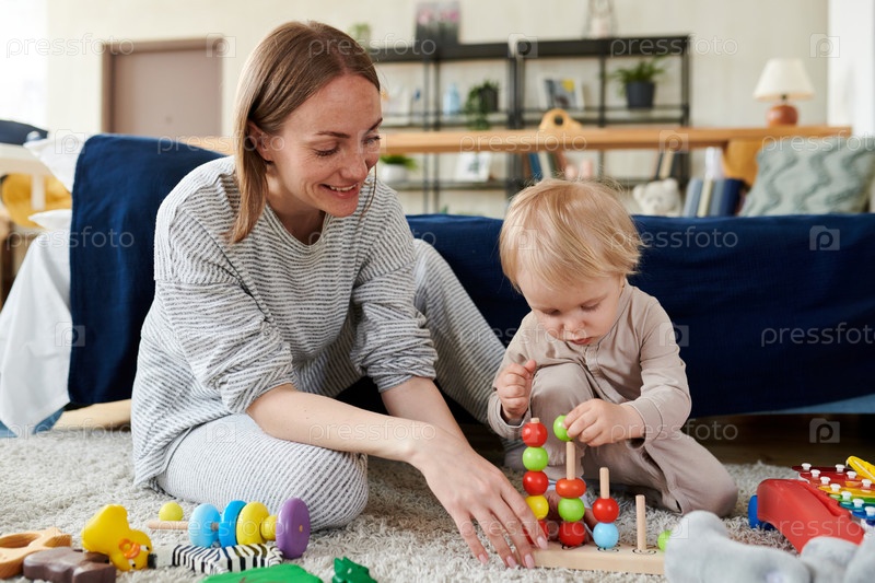 Мать играет со своим маленьким сыном