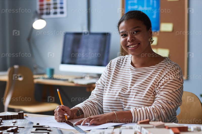 Афроамериканский архитектор рисует чертеж
