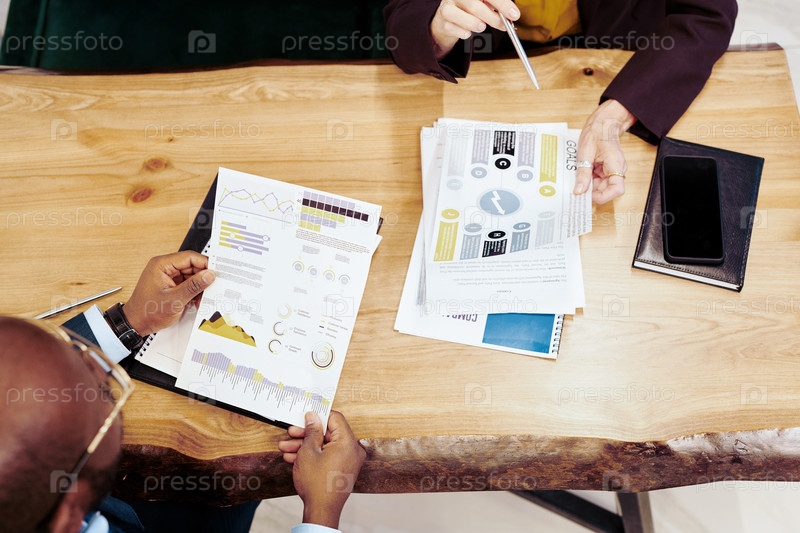 Люди обсуждают финансовые документы на встрече