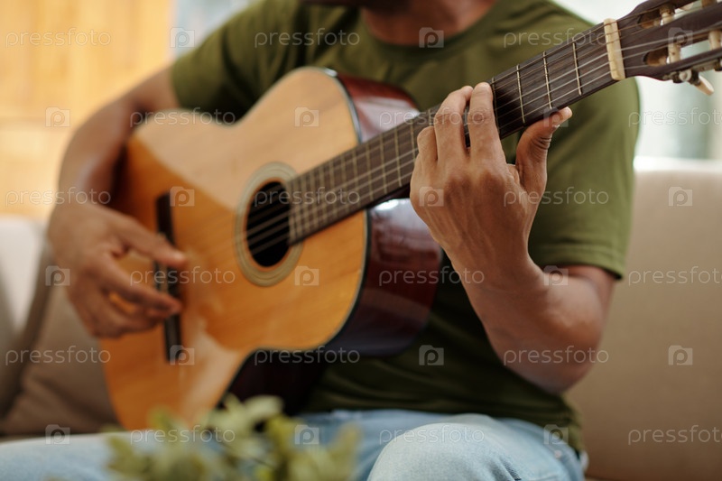 Играет на гитаре дома Мужчина