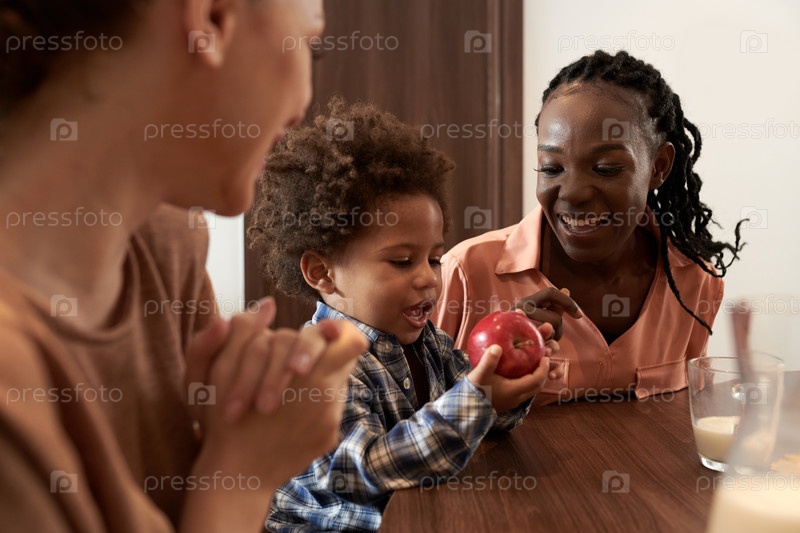 Мать дарит сыну яблоко
