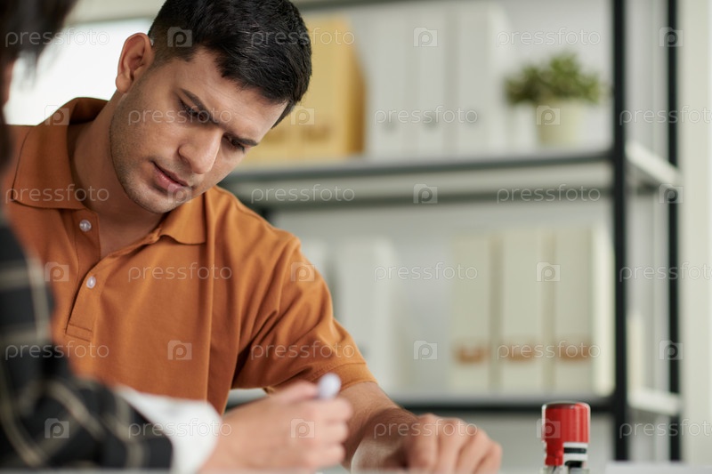 Молодой человек подписывает документы