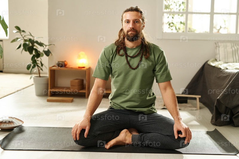 Молодой человек занимается йогой дома