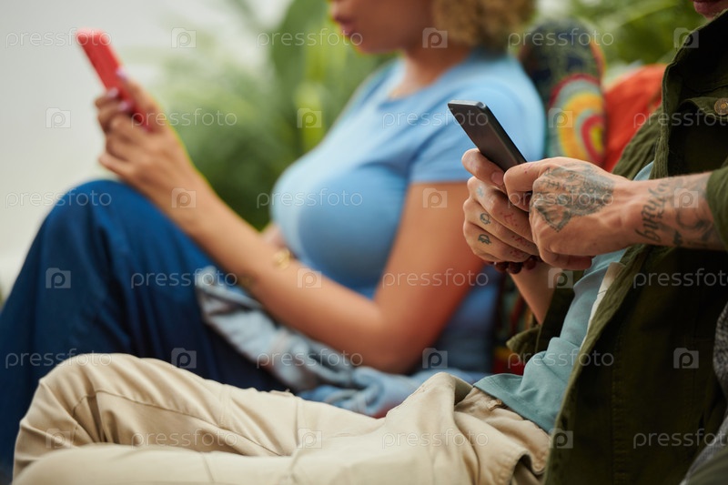 Молодые люди, пристрастившиеся к телефонам