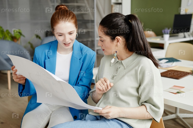 Коллеги проверяют чертежи в офисе