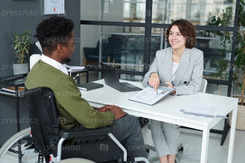Менеджер обсуждает резюме с кандидатом-инвалидом