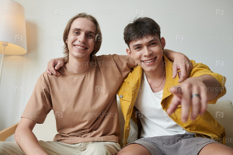 Молодые мужчины смотрят комедийный фильм
