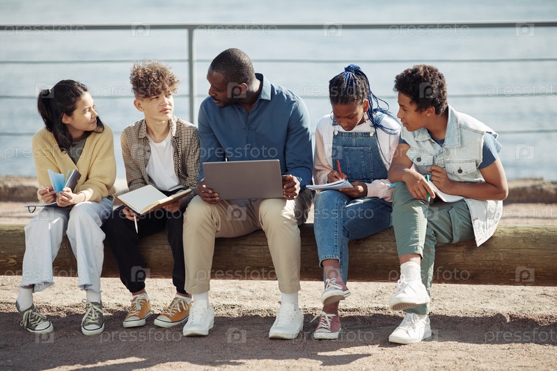 Группа детей в классе на открытом воздухе