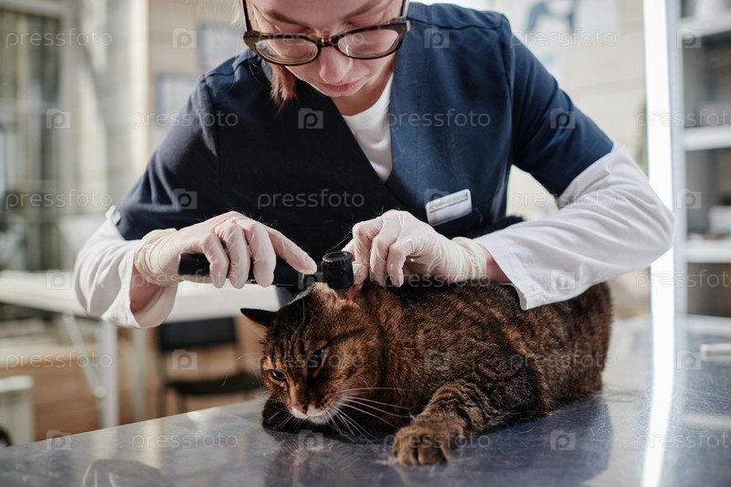 Ветеринар осматривает домашнего кота в клинике