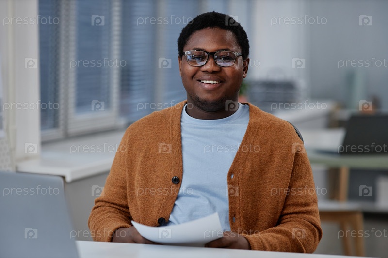 Счастливый молодой афроамериканский исполнительный директор с бумагой