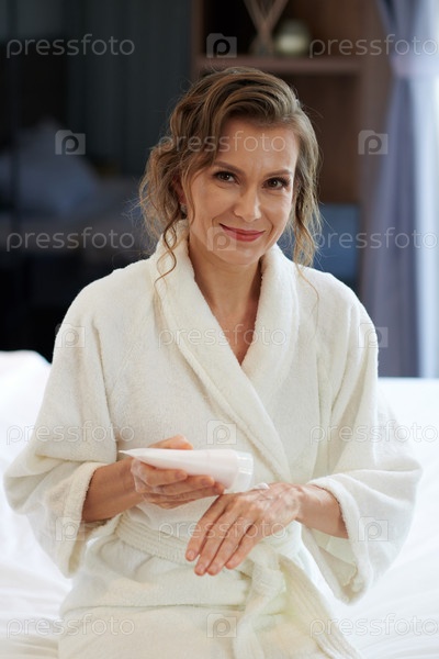 Женщина, применяющая крем для рук