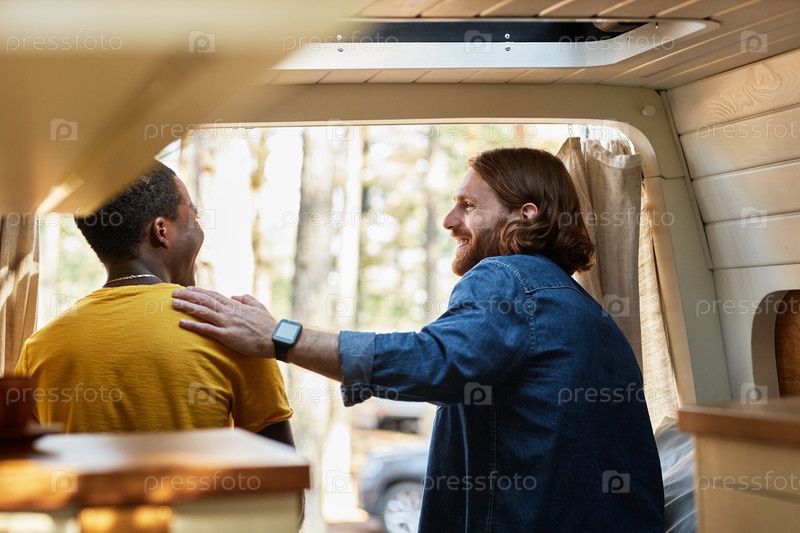 Друзья наслаждаются кемпингом в трейлере