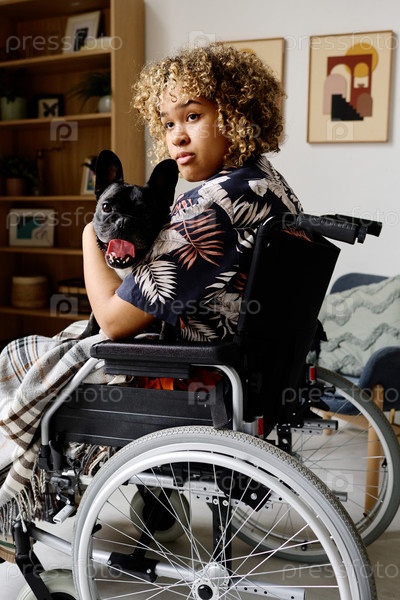 Девушка-инвалид, держащая своего питомца