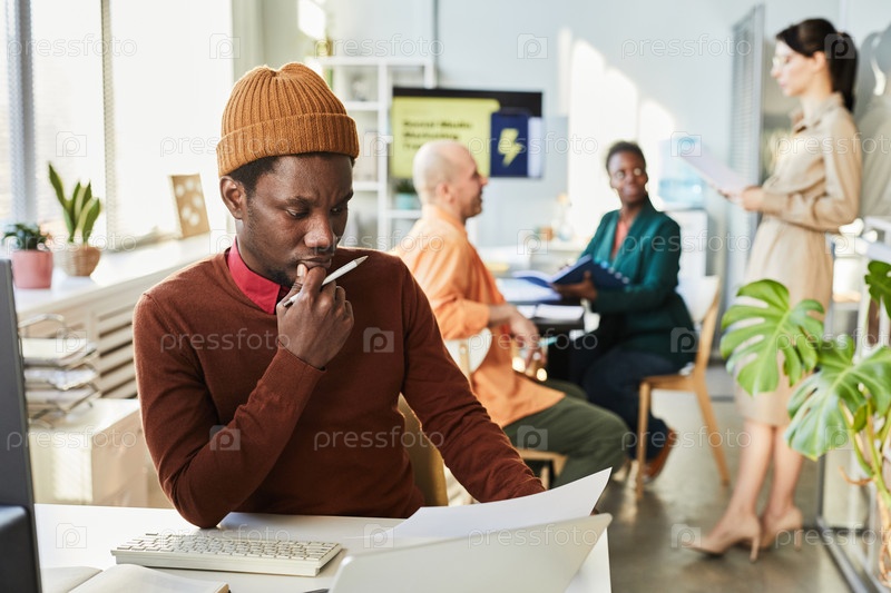 Черный молодой человек на рабочем месте в творческом бизнесе