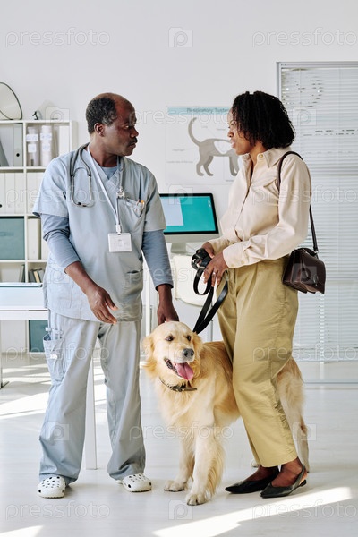 Ветеринар разговаривает с владельцем собаки