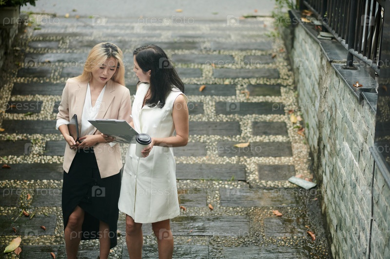 Деловые женщины обсуждают отчет