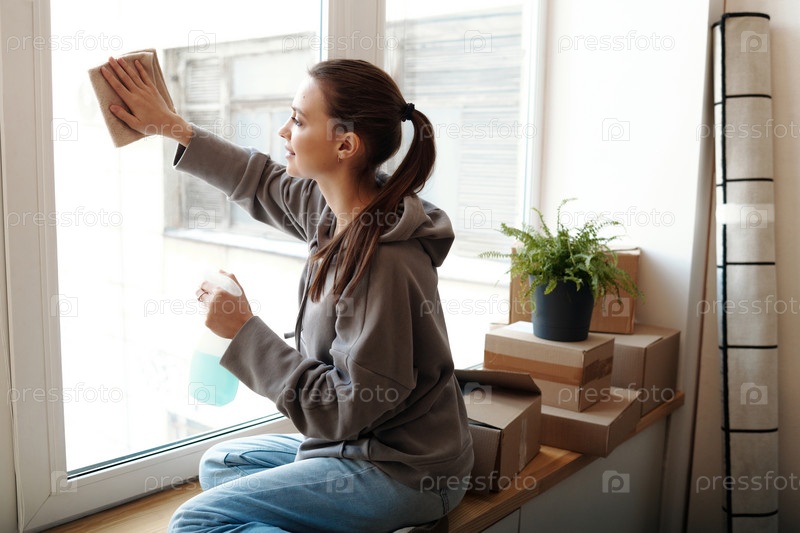 Женщина, убирающая вещи в новом доме