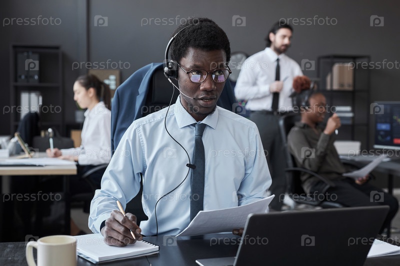 Брокер разговаривает с клиентом в офисе