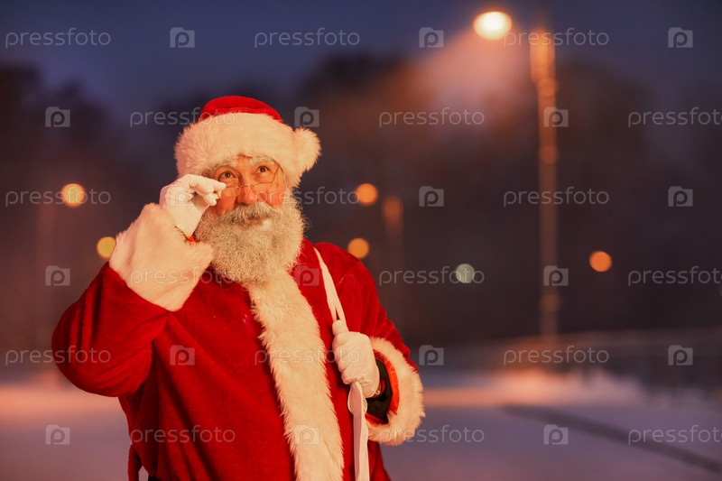 Портрет Санты-Клауса ночью в городе