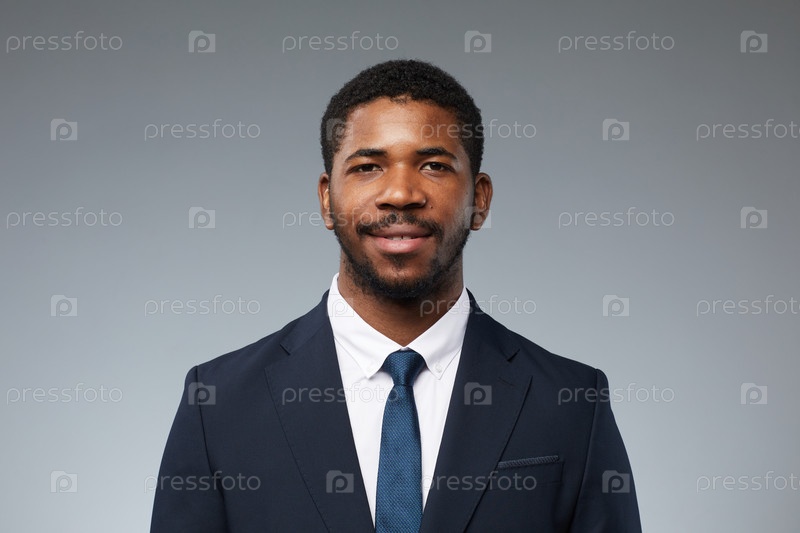Черный бизнесмен на сером