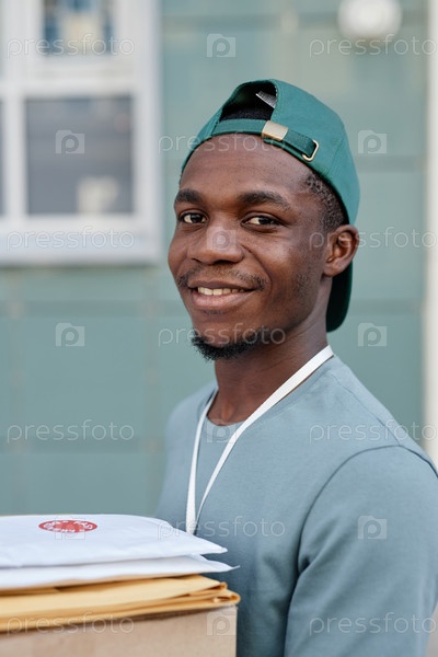 Улыбающийся мужчина доставляет пакет