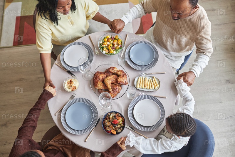 Африканская семья молится перед ужином