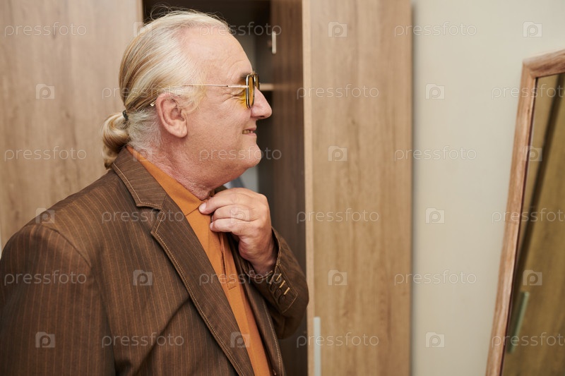 Старший мужчина, глядящий в зеркало