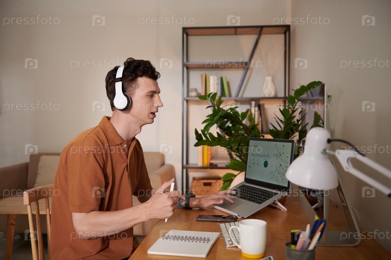 Молодой человек выступает на онлайн-собрании