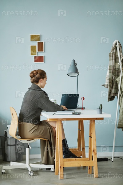 Женщина, работающая на ноутбуке в офисе