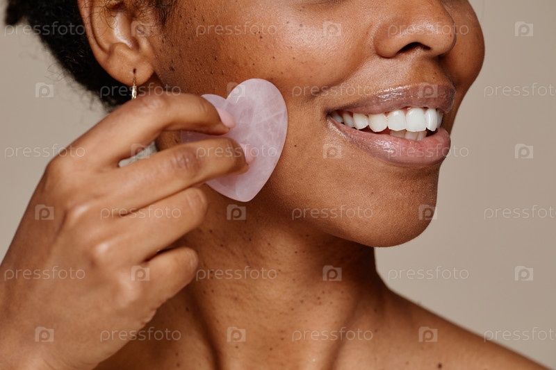 Черная женщина наслаждается натуральным массажем лица