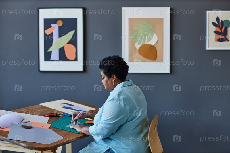 Боковой вид старшей афроамериканской ремесленницы, создающей новое приложение для бумаги