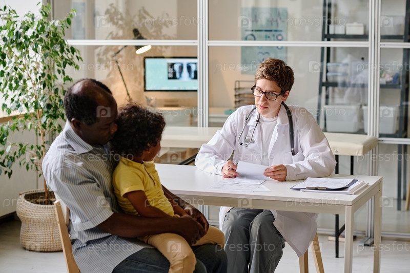 Врач разговаривает с ребенком в кабинете